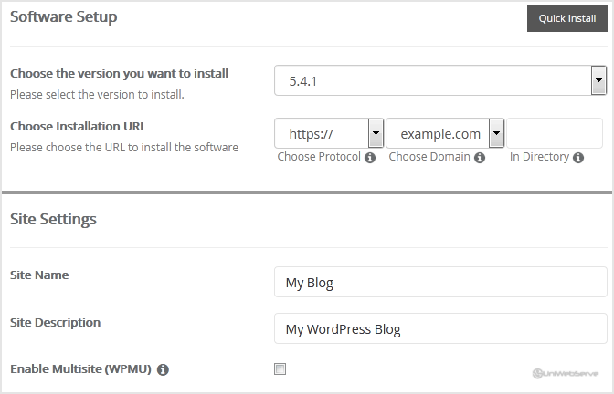 Site Description: Your site description. - Enable Multisite (WPMU): Leave this disabled (unchecked)